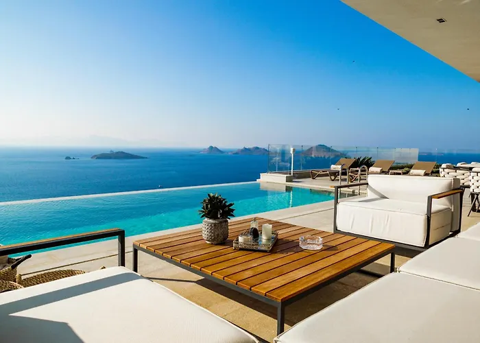 Villa Lamia位于博德鲁姆,是一栋4间卧室的别墅,设有大海景的露台。 Karaincir Halk Plaji距离别墅有3.7公里,而Sevket Sabanci Kultur ve Sanat Merkezi离它500米。